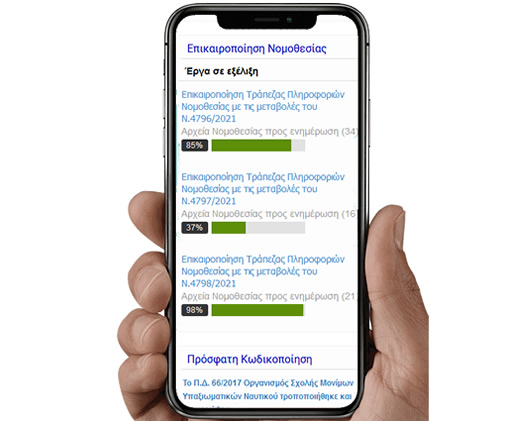 Παρακολούθηση της ροής των Εργασιών Κωδικοποίησης της Νομοθεσίας που βρίσκεται σε εξέλιξη